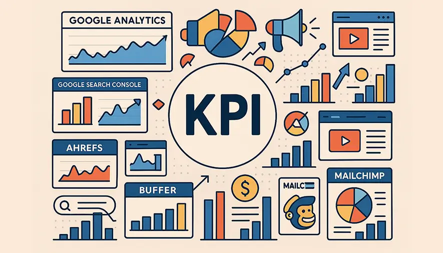 ابزارهایی مانند Google Analytics، Search Console، SEMrush، Ahrefs، Mailchimp و Hootsuite به شما کمک میکنند تا دادههای مربوط به KPIها را بهصورت دقیق جمعآوری و تحلیل کنید.