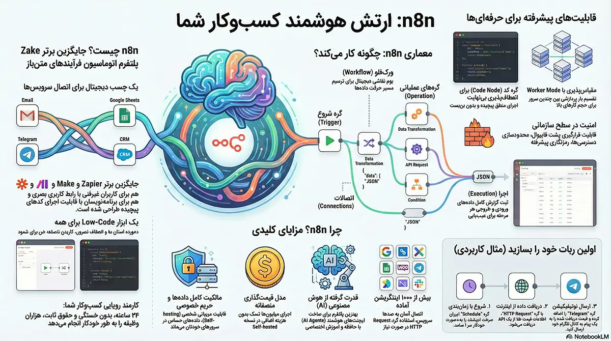 اینفوگرافیک آشنایی با N8N اتوماسیون هوشمند